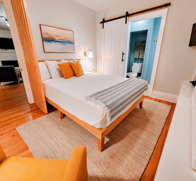 Every room includes a private bathroom, with either a bath or a shower (or both!). You'll have your own TV with Xfinity Stream cable subscriptions, including the sports package. For the cooler months, every room has a gas or electric fireplace. Fresh towels and linens are available mid-stay by request.